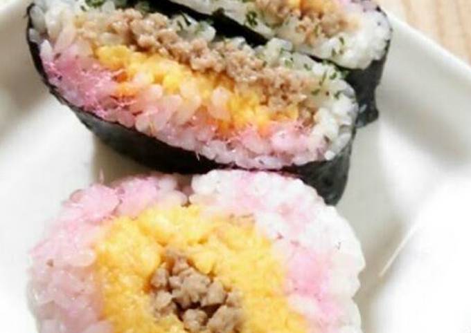 4-Color Chicken Soboro Onigiri Sandwiches instructions